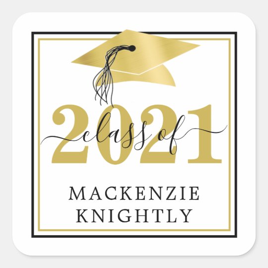 Elegant Graduation Cap Class Year Name Black Gold Square Sticker ...