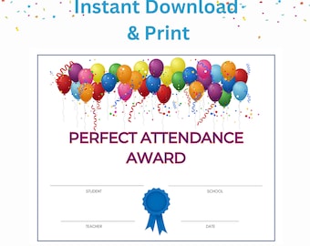 Perfect Attendance Student Award Graduation Certificate Instant Printable
