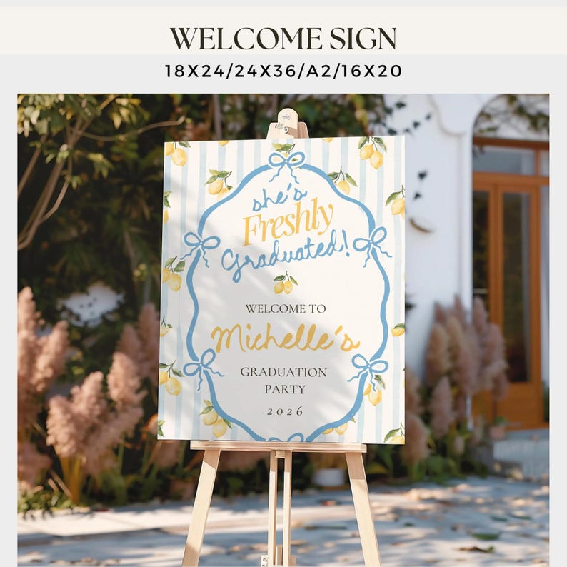 Lemon Graduation Food Menu Template, Freshly Graduated Party Menu Sign ...