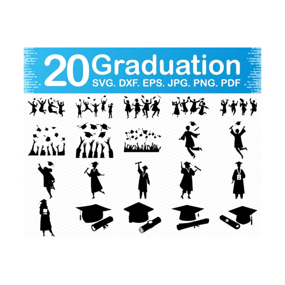 Graduation Сlipart SVG PNG Set Line Art Clipart Bandle Illustrations ...