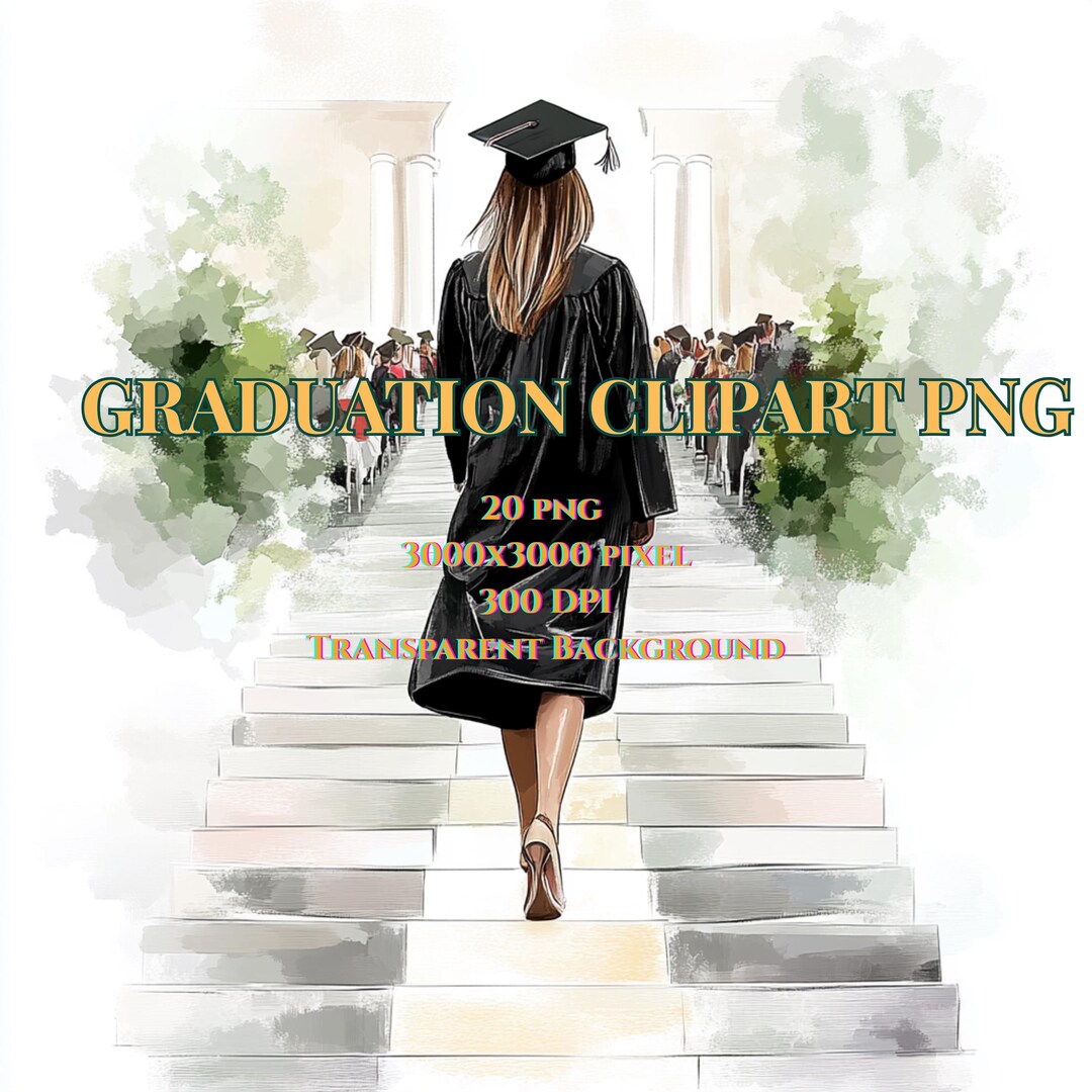 Watercolor Graduation Clipart: Hand-painted Graduate Art (PNG Digital ...