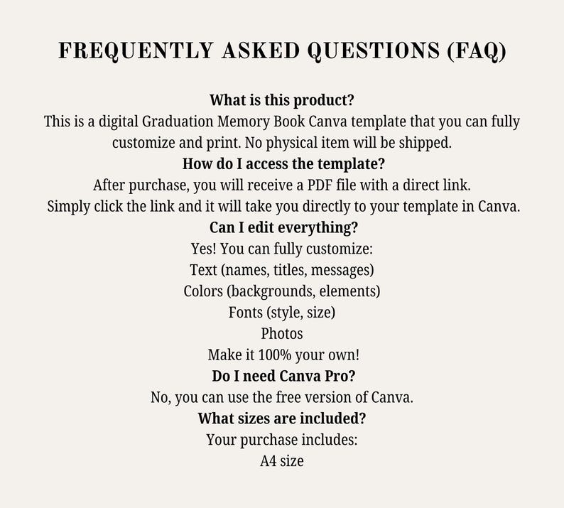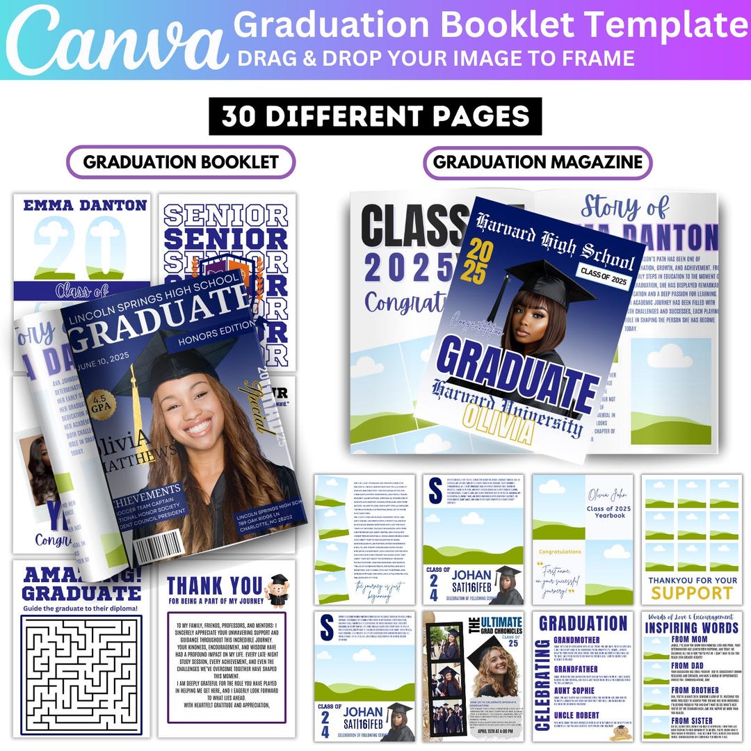 Editable Graduation Booklet Template: 12-page Canva Design (digital ...