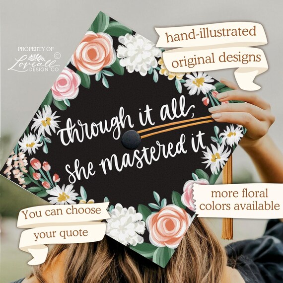 Graduation Cap Hand Lettering And Flowers Graduation Custom Graduation