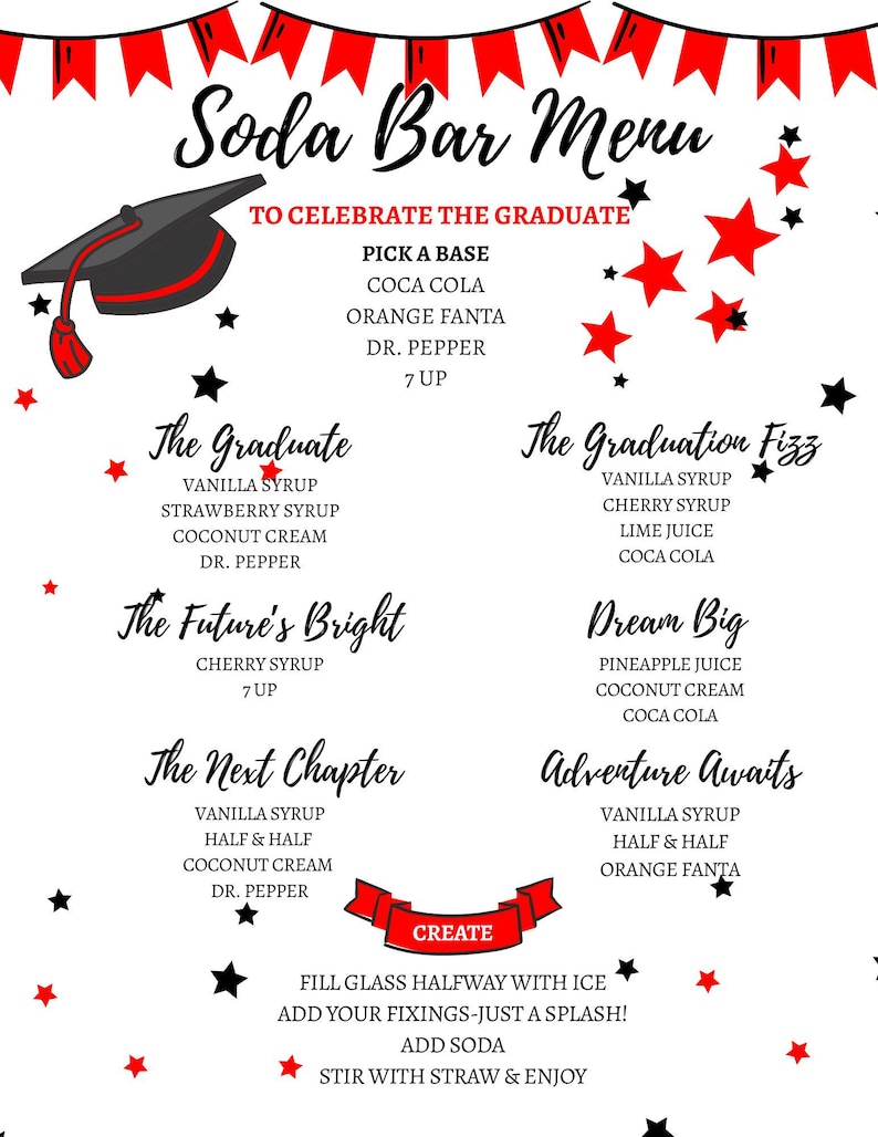 Graduation Soda Bar Menu Black Background in Multiple Color Options ...