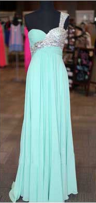 Charming A-line One Shoulder Long Chiffon Prom Dresses Sweetheart ...