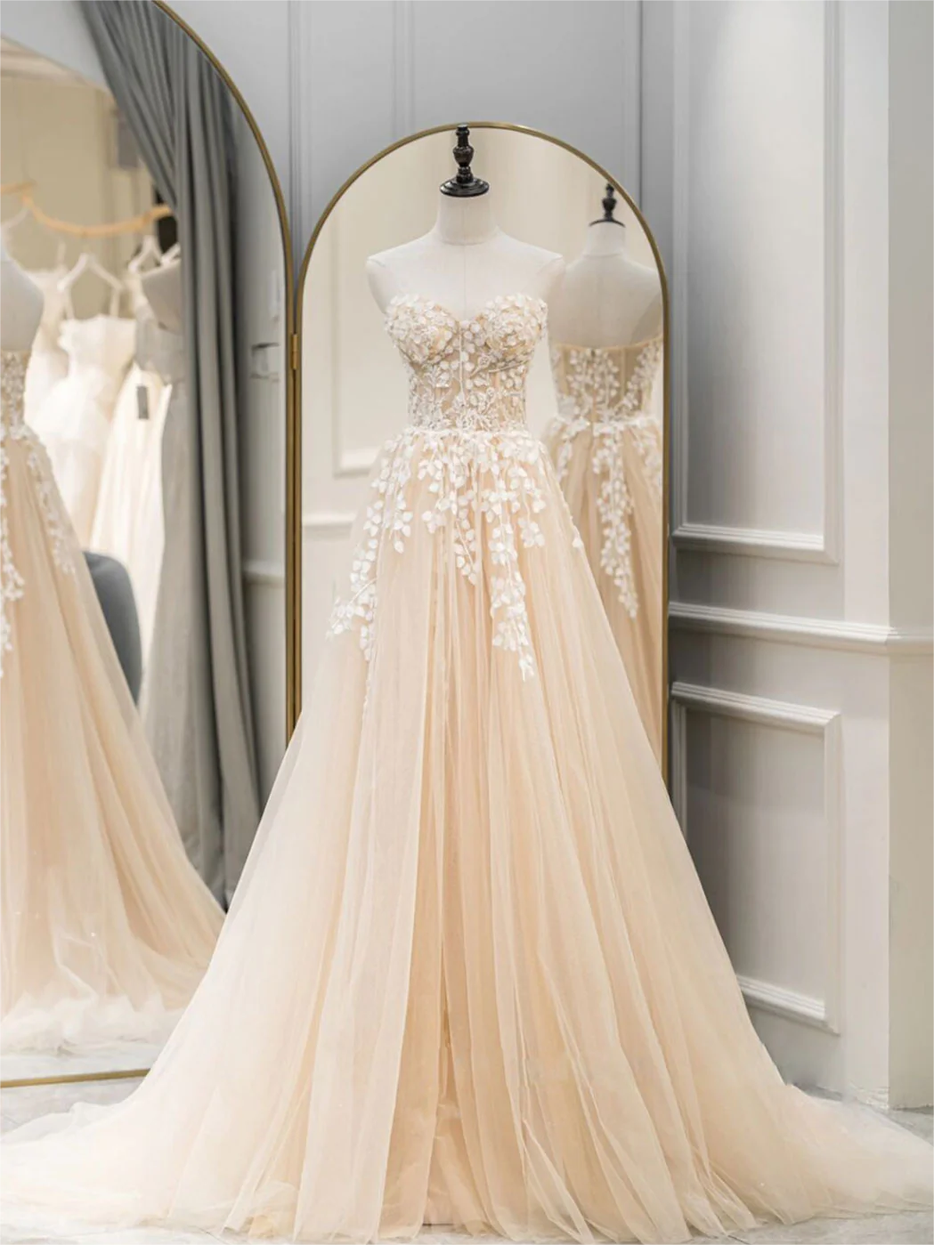 Prom Dresses,a Line Sweetheart Neck Tulle Lace Long Prom Dresses 2025 ...