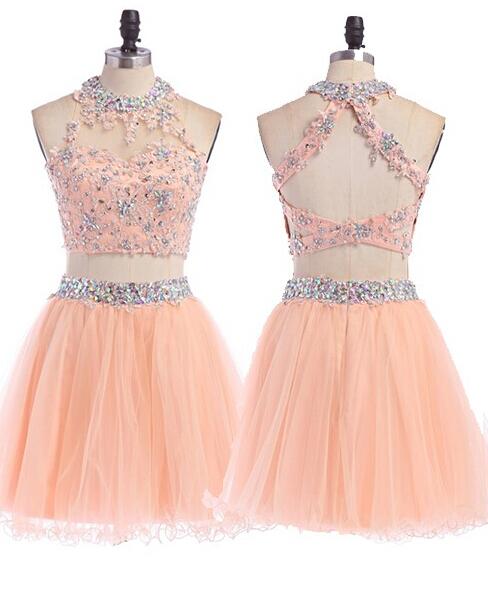 Two Pieces Tulle Prom Dress,beading Homecoming Dress, Short Prom ...
