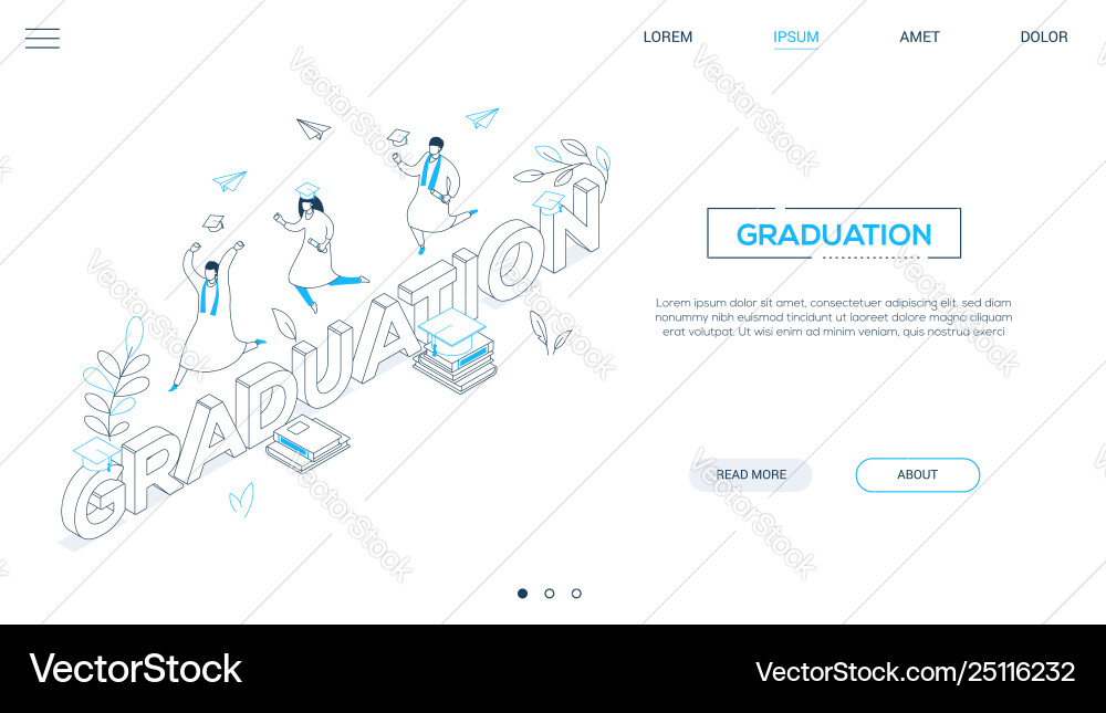 Graduation Concept Line Design Style Isometric Web Banner Stock ...