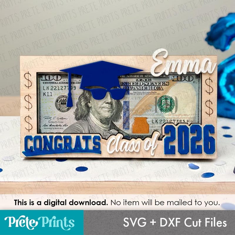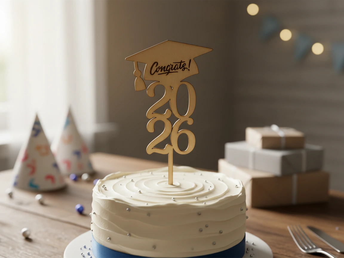Graduation 2026 wooden topper with cap and Congrats lettering, laser ...