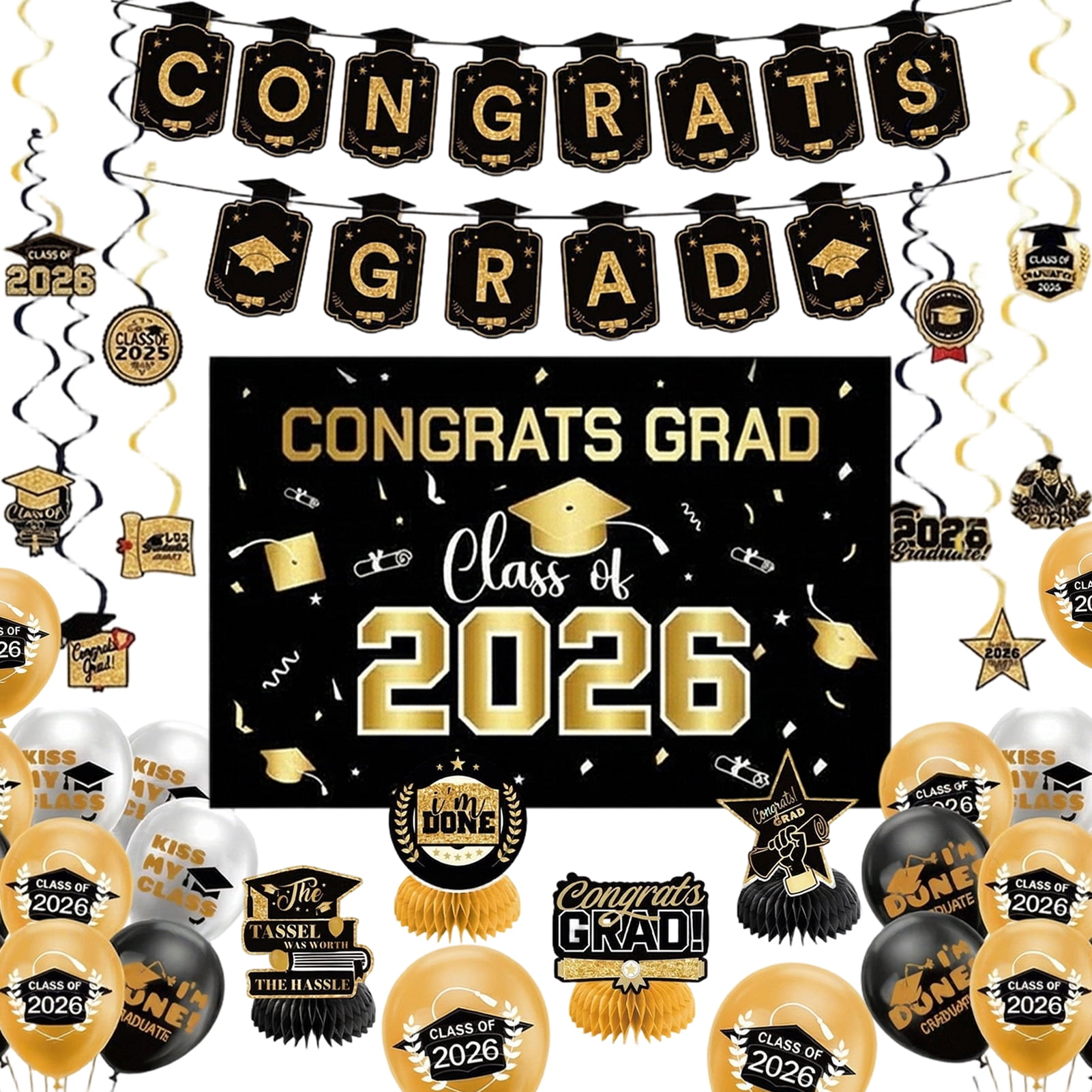 Black Gold Congrats Grad Backdrop Class of 2026 Graduation Background ...