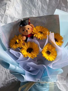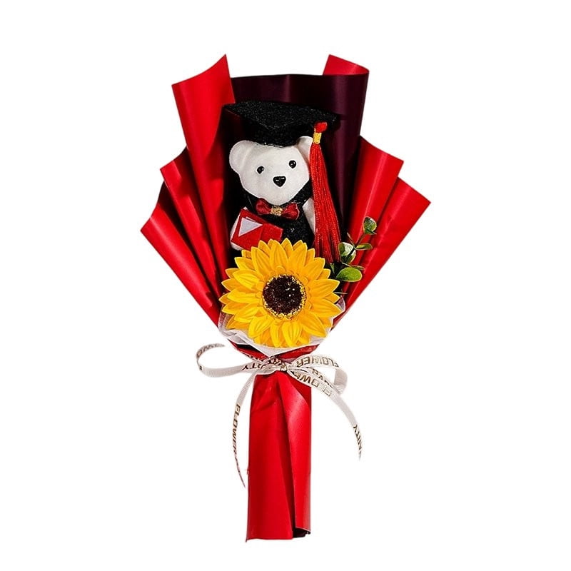 AURIGATE Graduation Bear Bouquet with Sunflower, Artificial Flower ...
