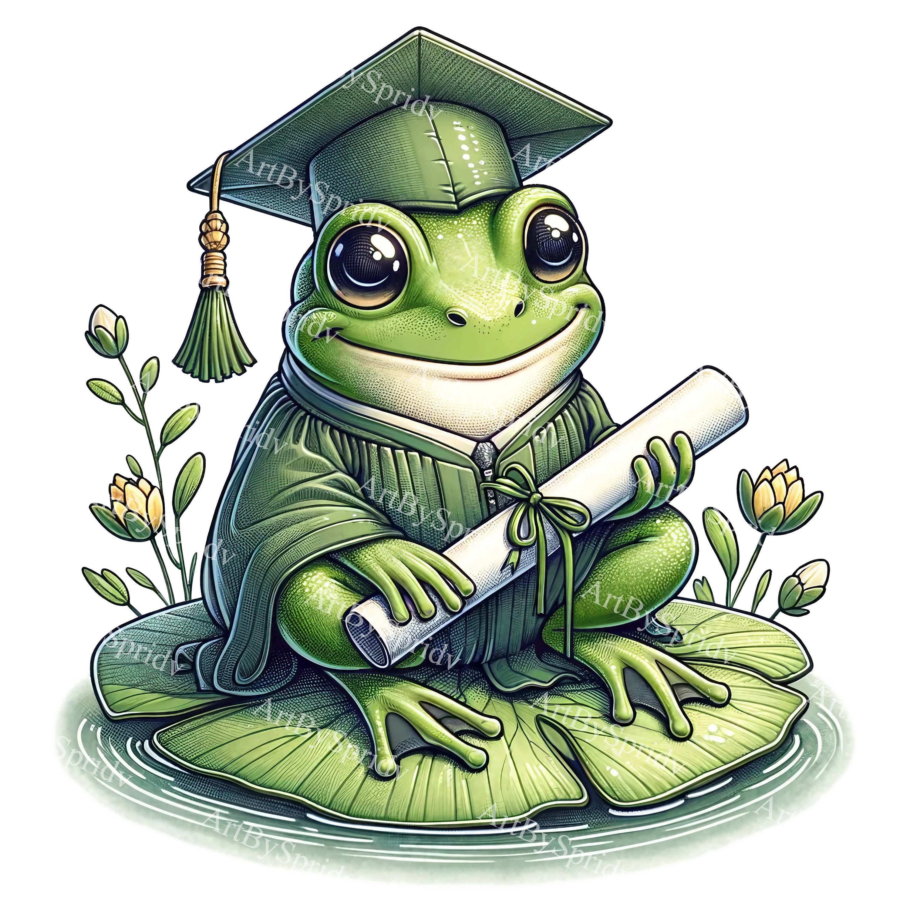 "Graduation Frog – Cute Frog in Cap Illustration for Students, Teachers ...