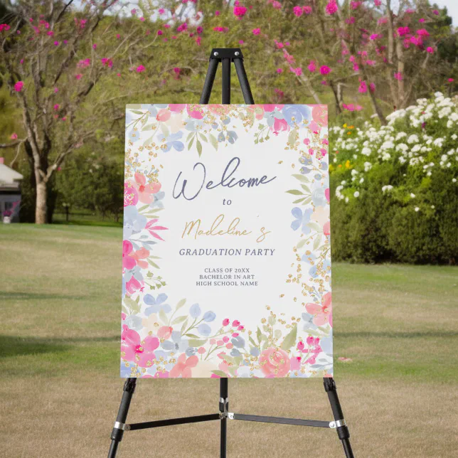Garden pastel wildflowers welcome graduation foam board | Zazzle