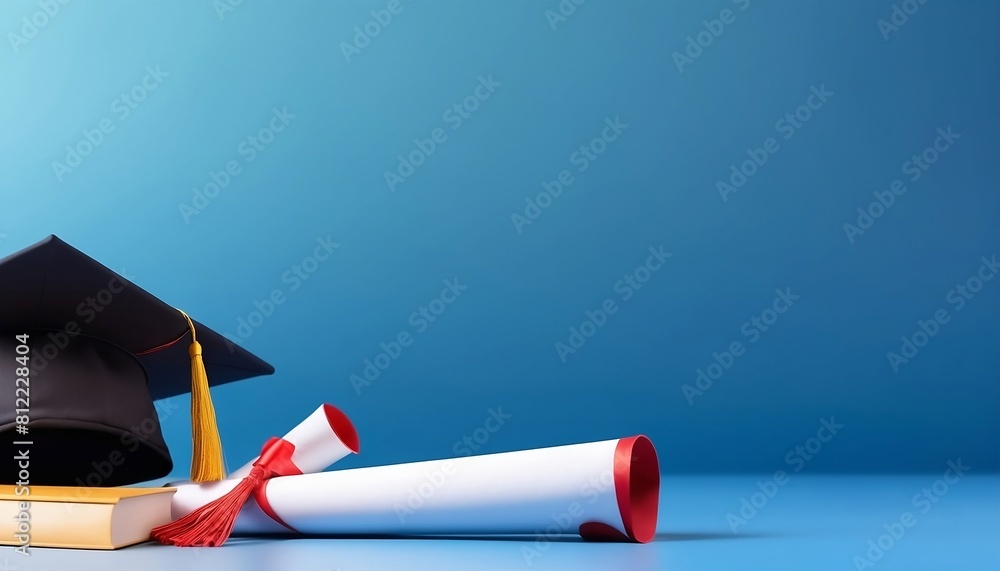 Graduation cap and diploma. Concept for happy graduation poster or card ...