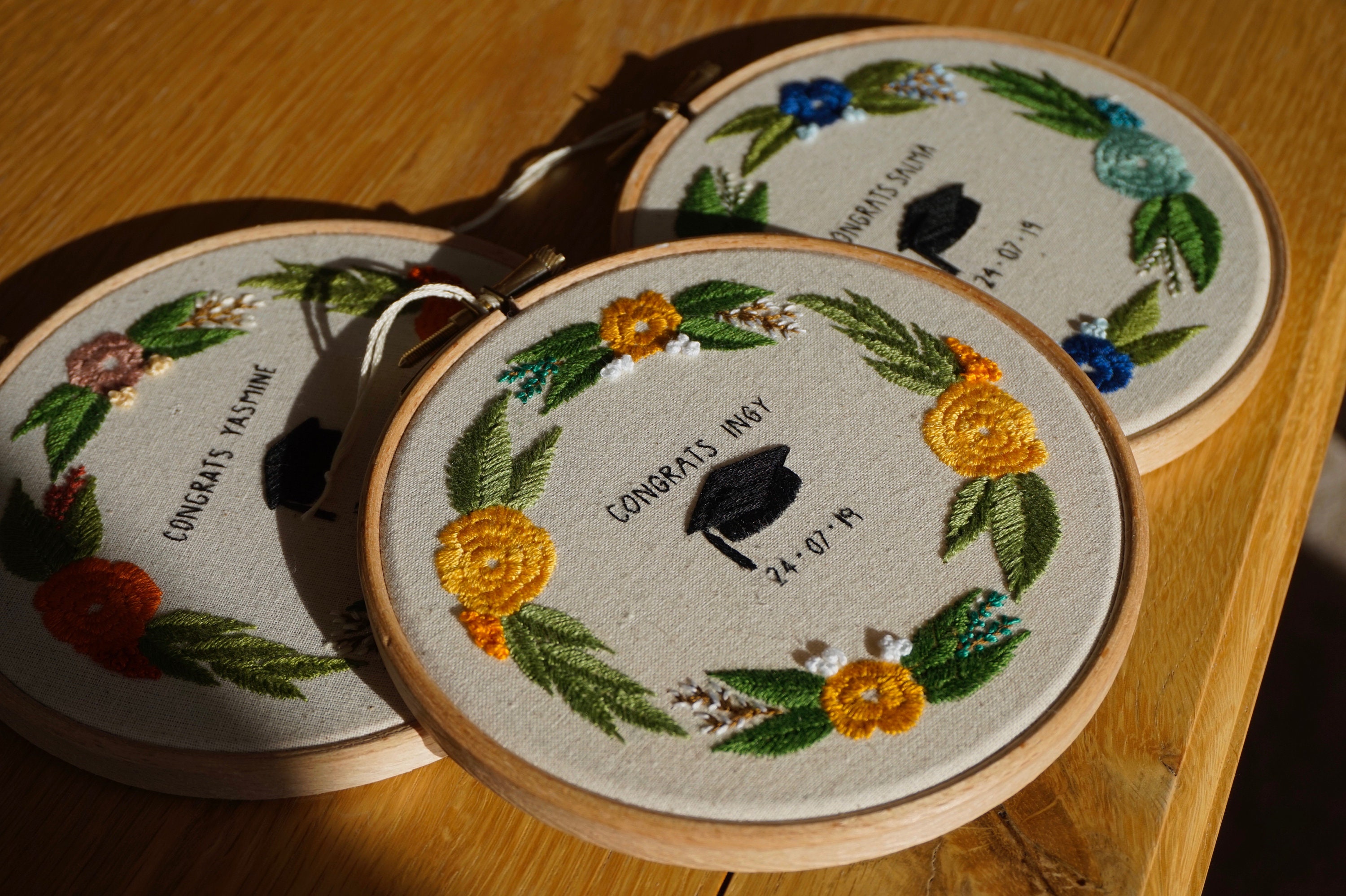 Emmi | Embroidery Artist on Instagram: “Graduation hoops These pieces ...