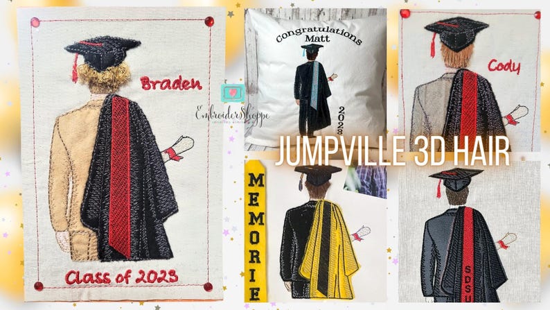 3D Hair Tom's Graduation 6X10 Hoop Applique Machine Embroidery Design ...