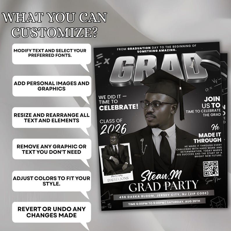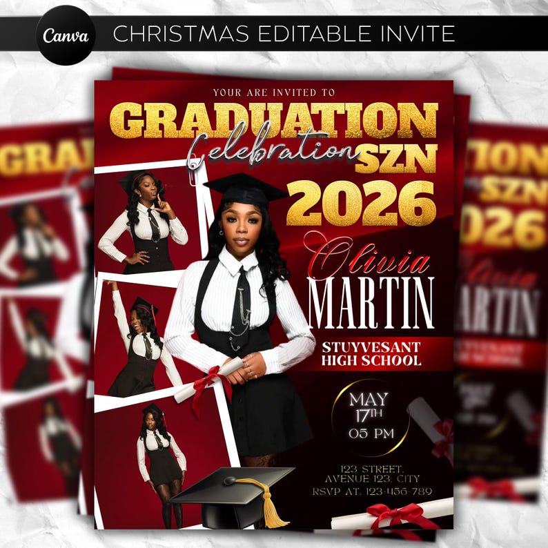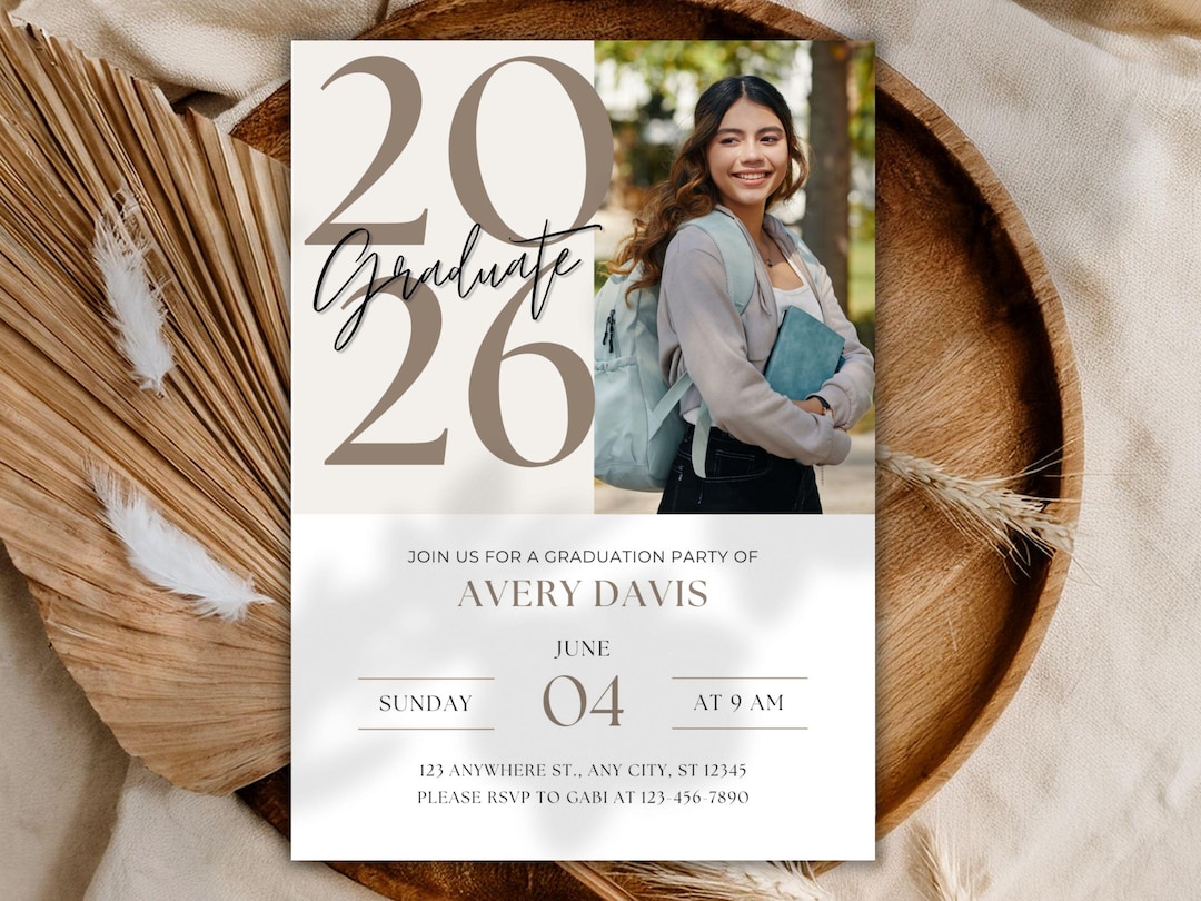 Editable Graduation Invitation Template with Photo | Class of 2026 Grad ...