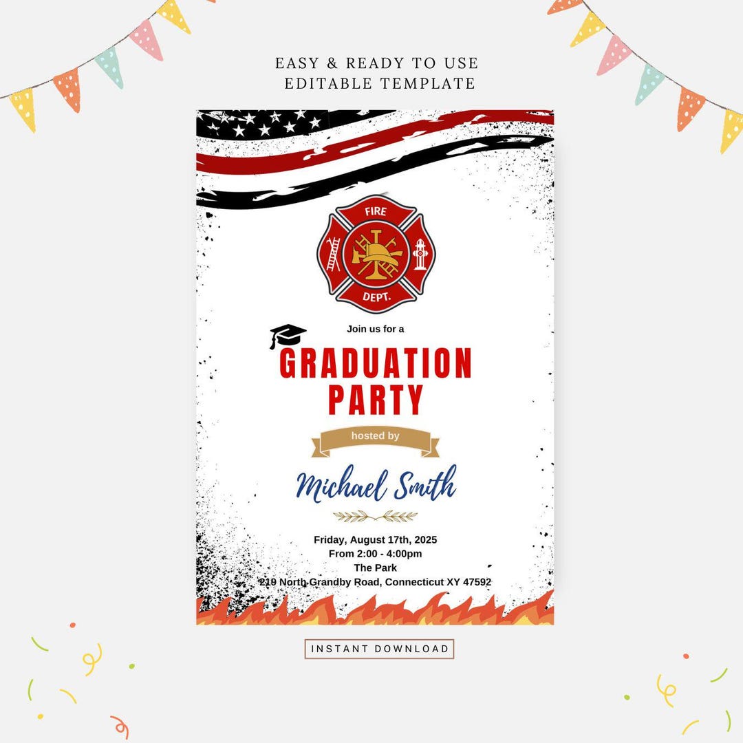 Firefighter Graduation Editable Invitation | Downloadable | Photoshop ...