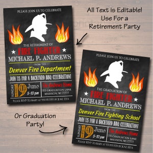 Editable Fire Fighter Graduation Invitation Chalkboard Printable ...