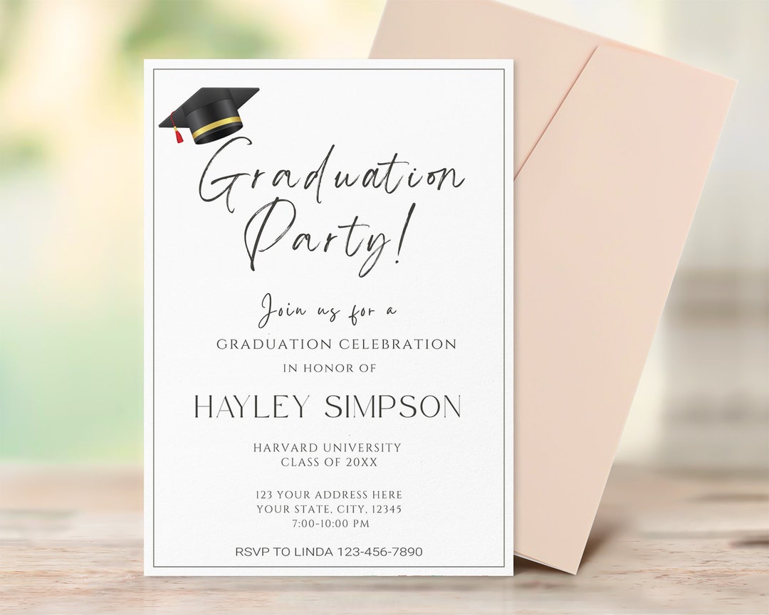 Minimalist Graduation Party Invitation, Grad Party Invitation for High ...