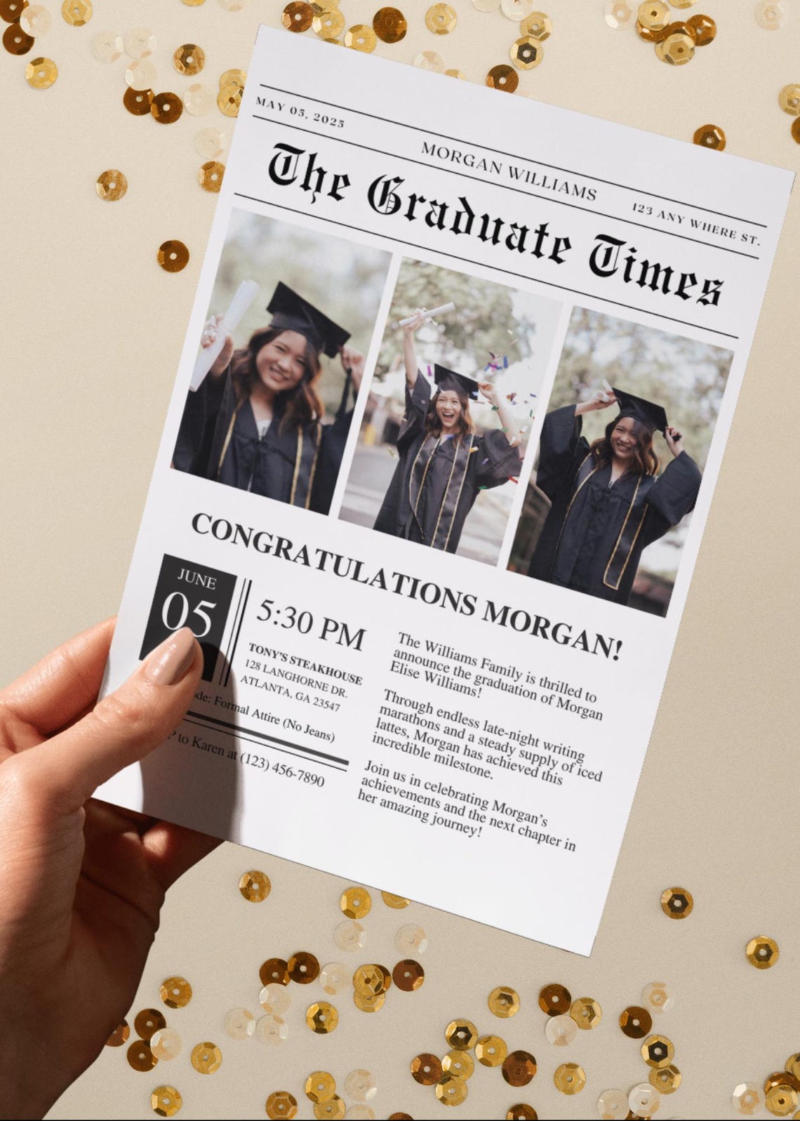 The Graduate Times Party Invitation - Editable Canva Template, Instant ...