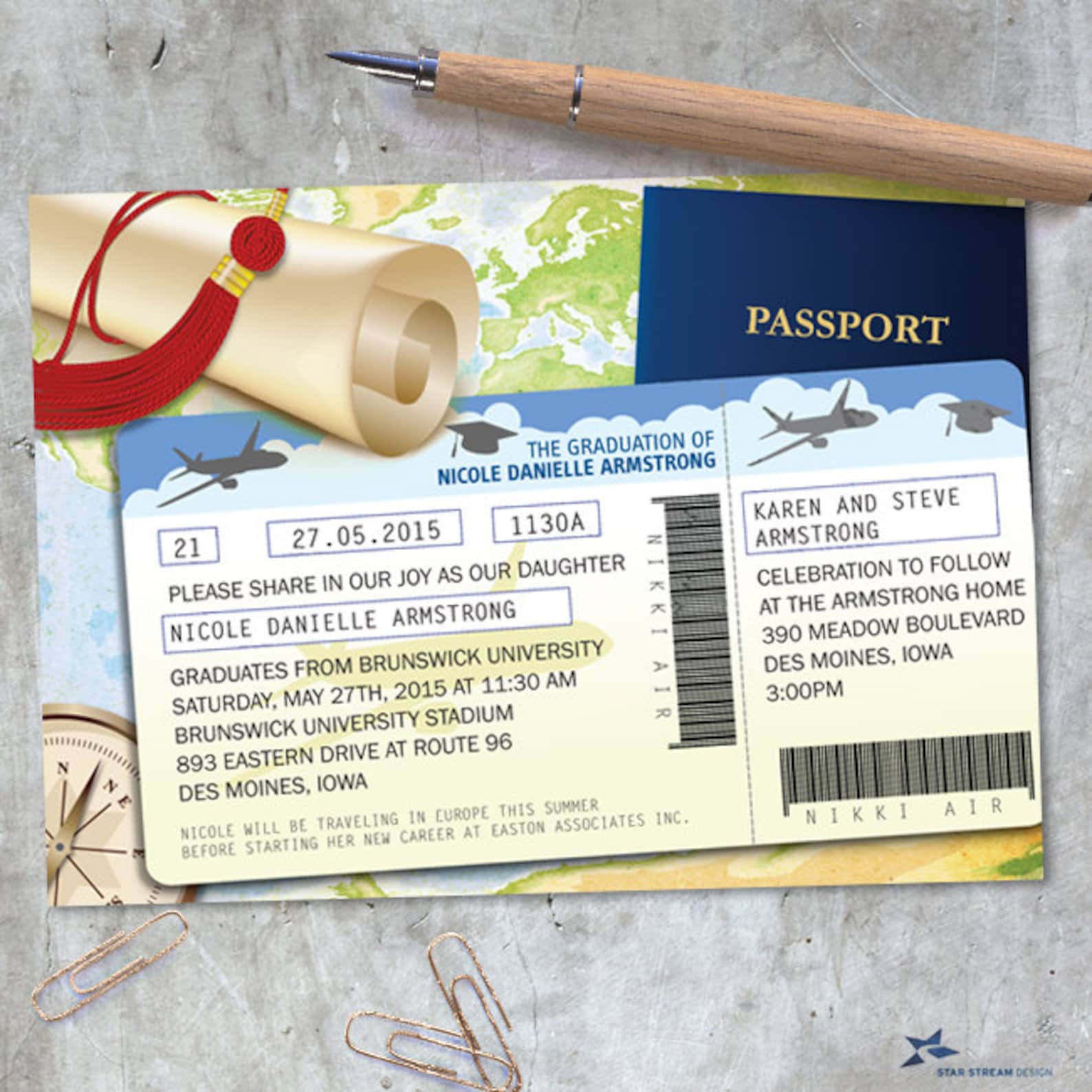 World Travel Documents Graduation Announcement Invitation - Etsy