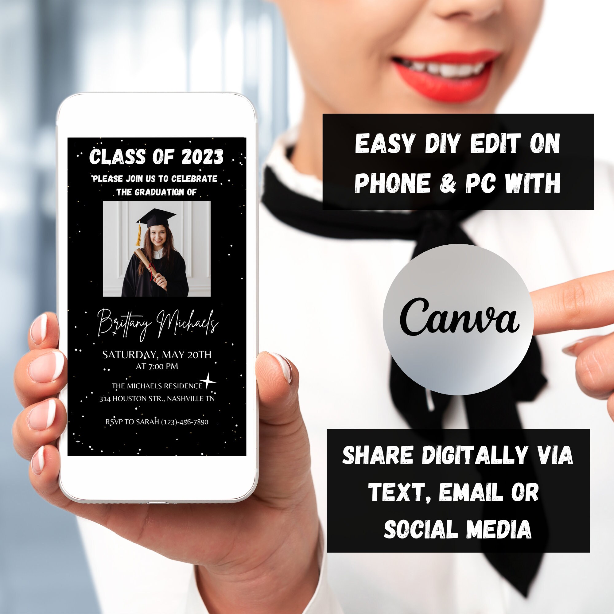 Editable Graduation Invitation, Graduate, Class 2023, Graduation ...
