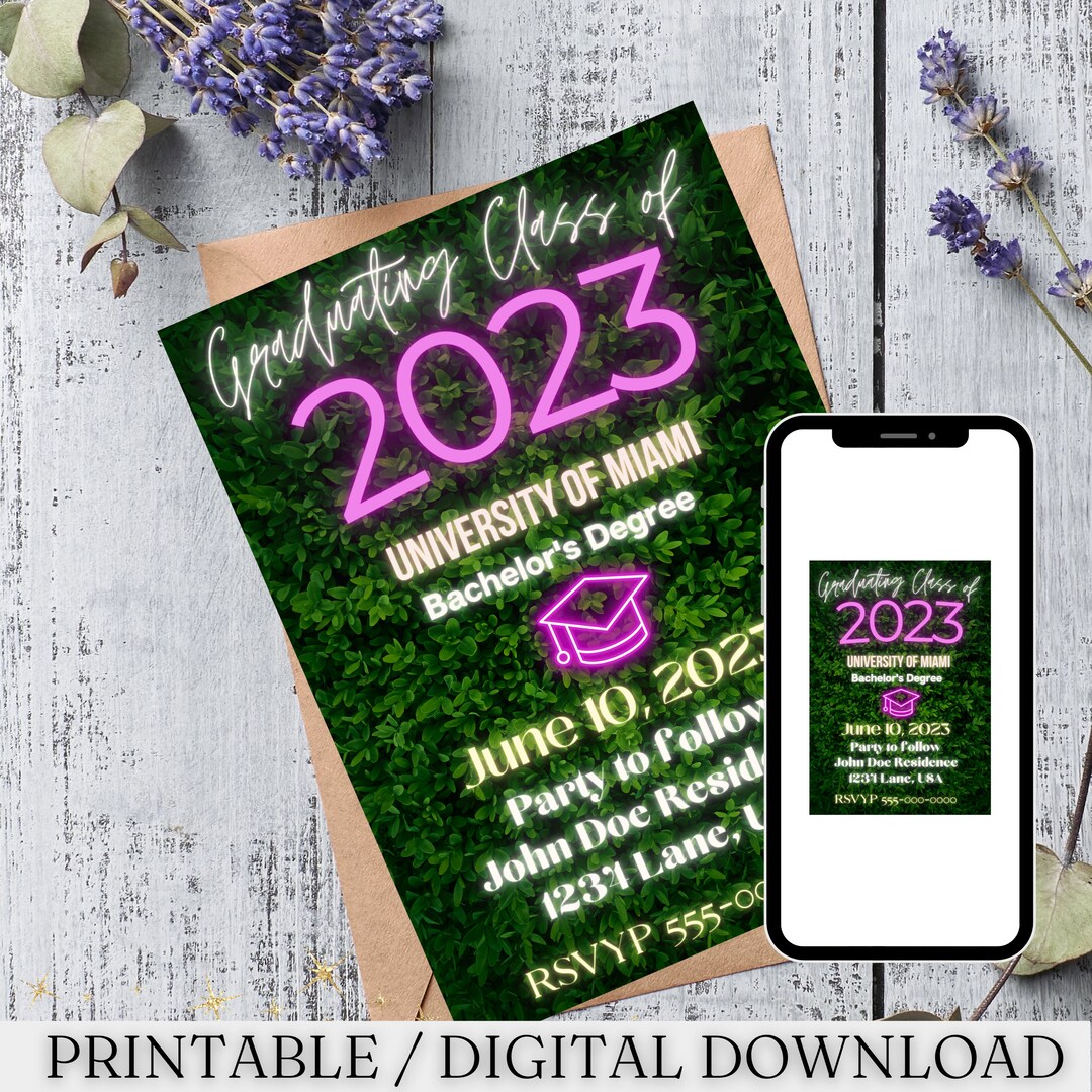 Graduation Digital Invitation/ Grad Neon Greenery Printable/ Digital ...