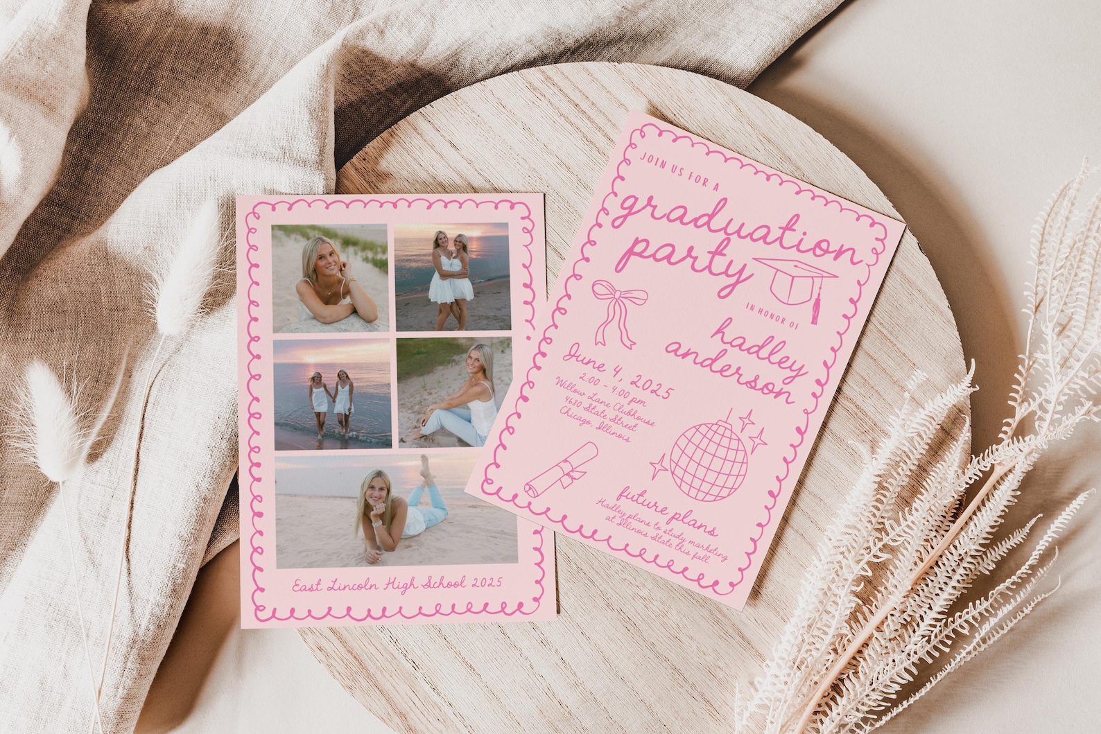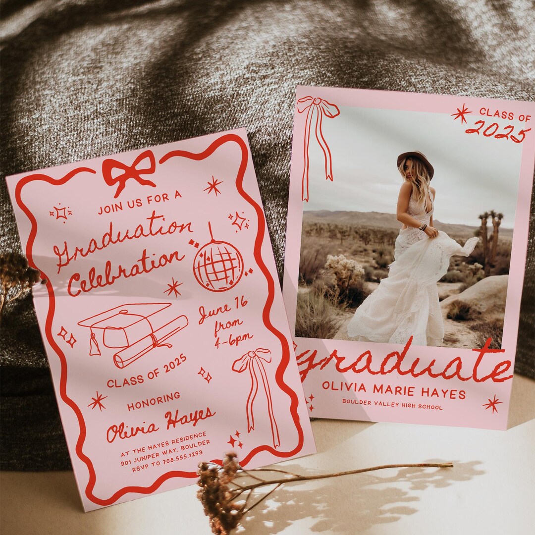 Pink Bow GRADUATION Invitation Template Coquette Grad Party Photo ...
