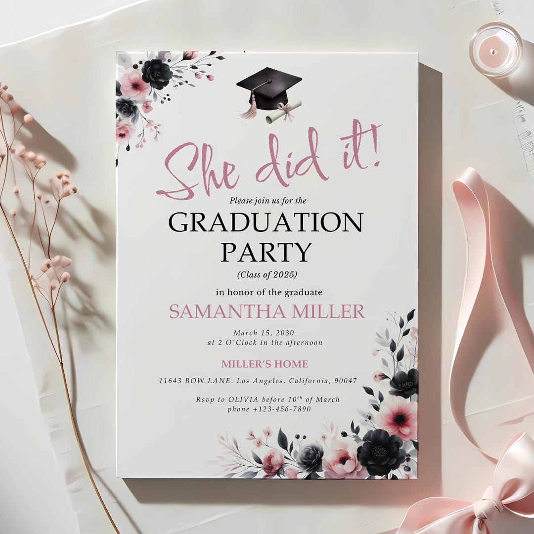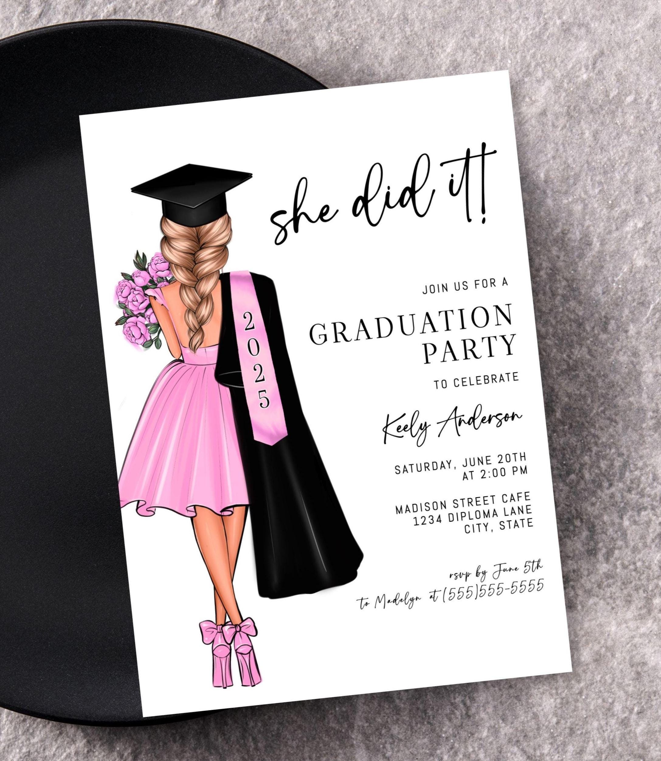 Graduation Invitation Editable Template, She Did It Graduation Party ...