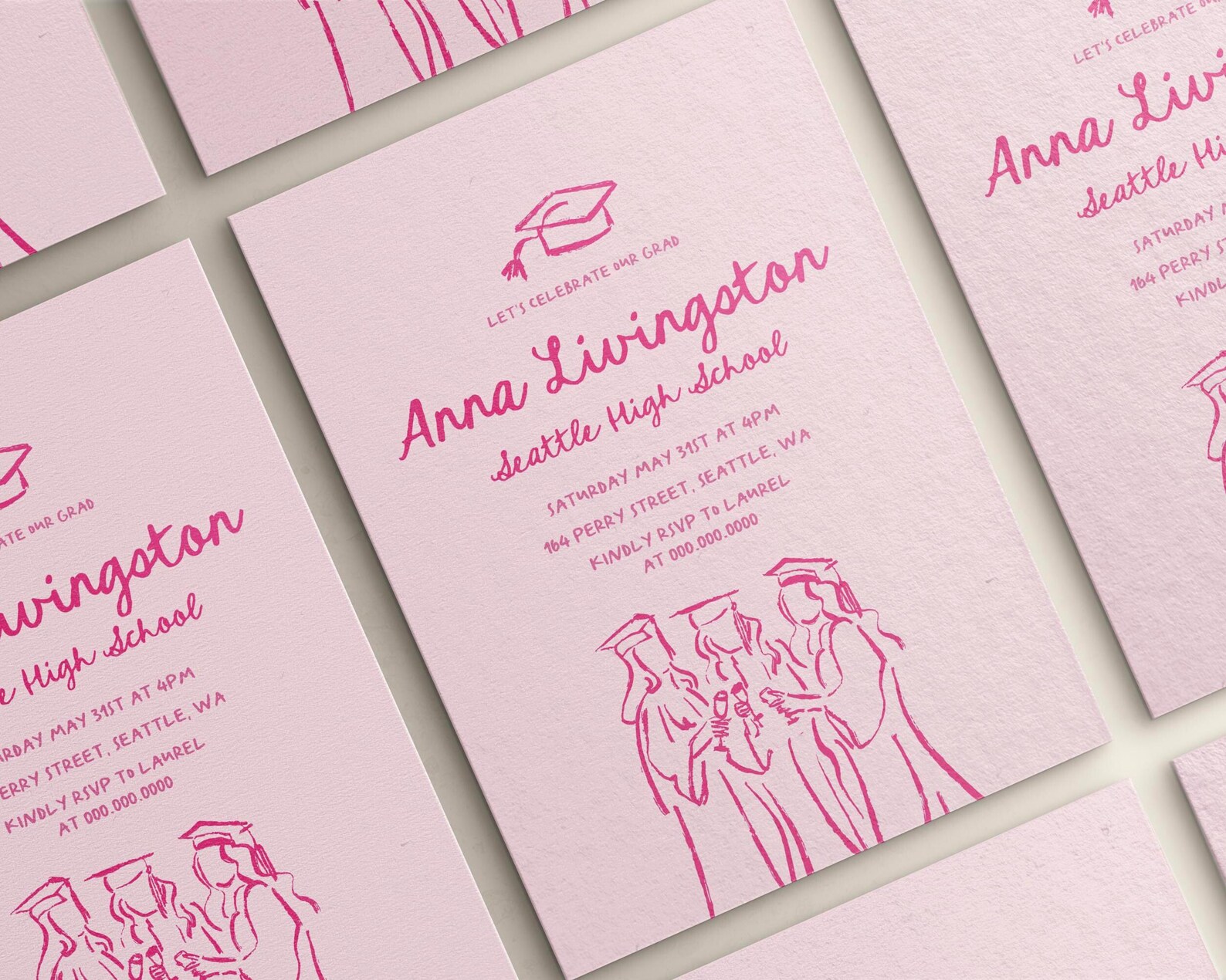 Pink Drawn Style Graduation Invitation Template, Senior Graduation ...