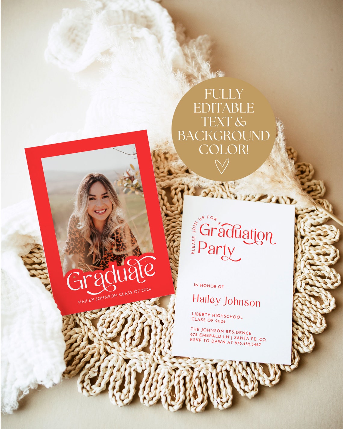 Modern Retro Graduation Party Invitation Template DIY Editable Photo ...