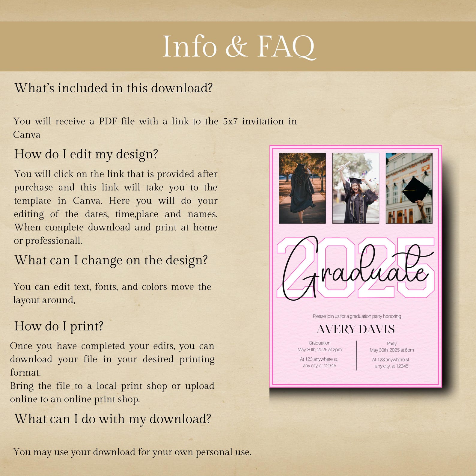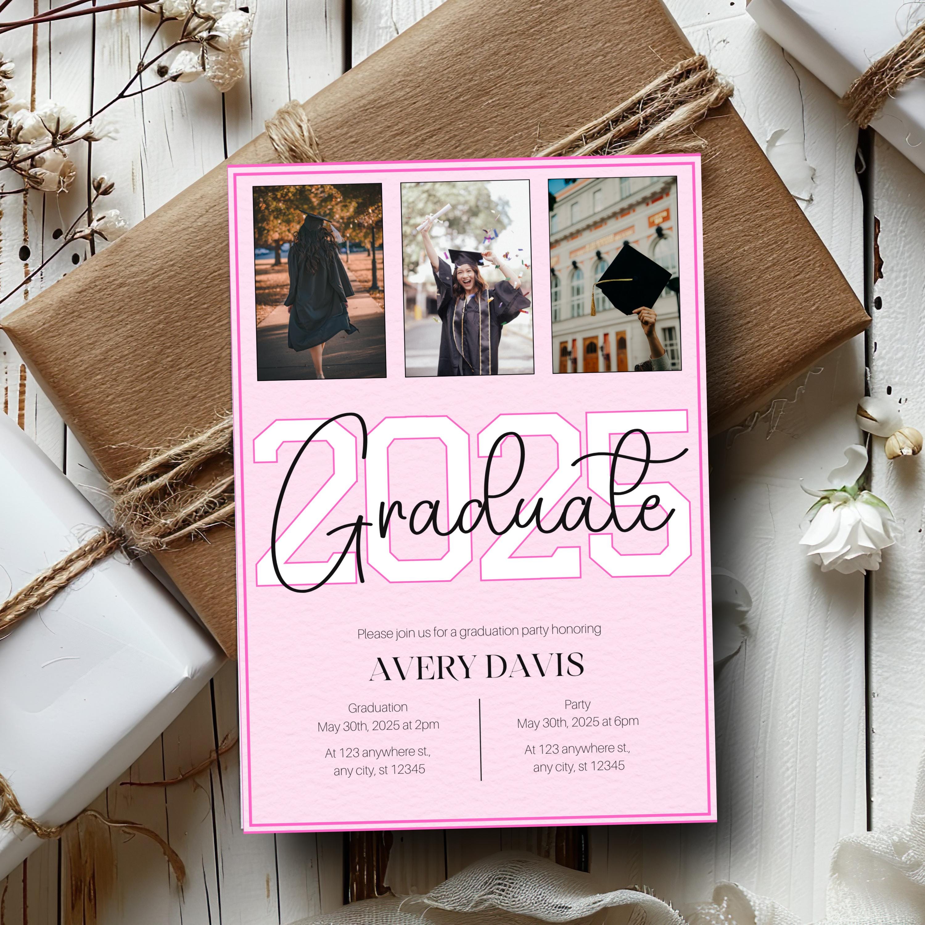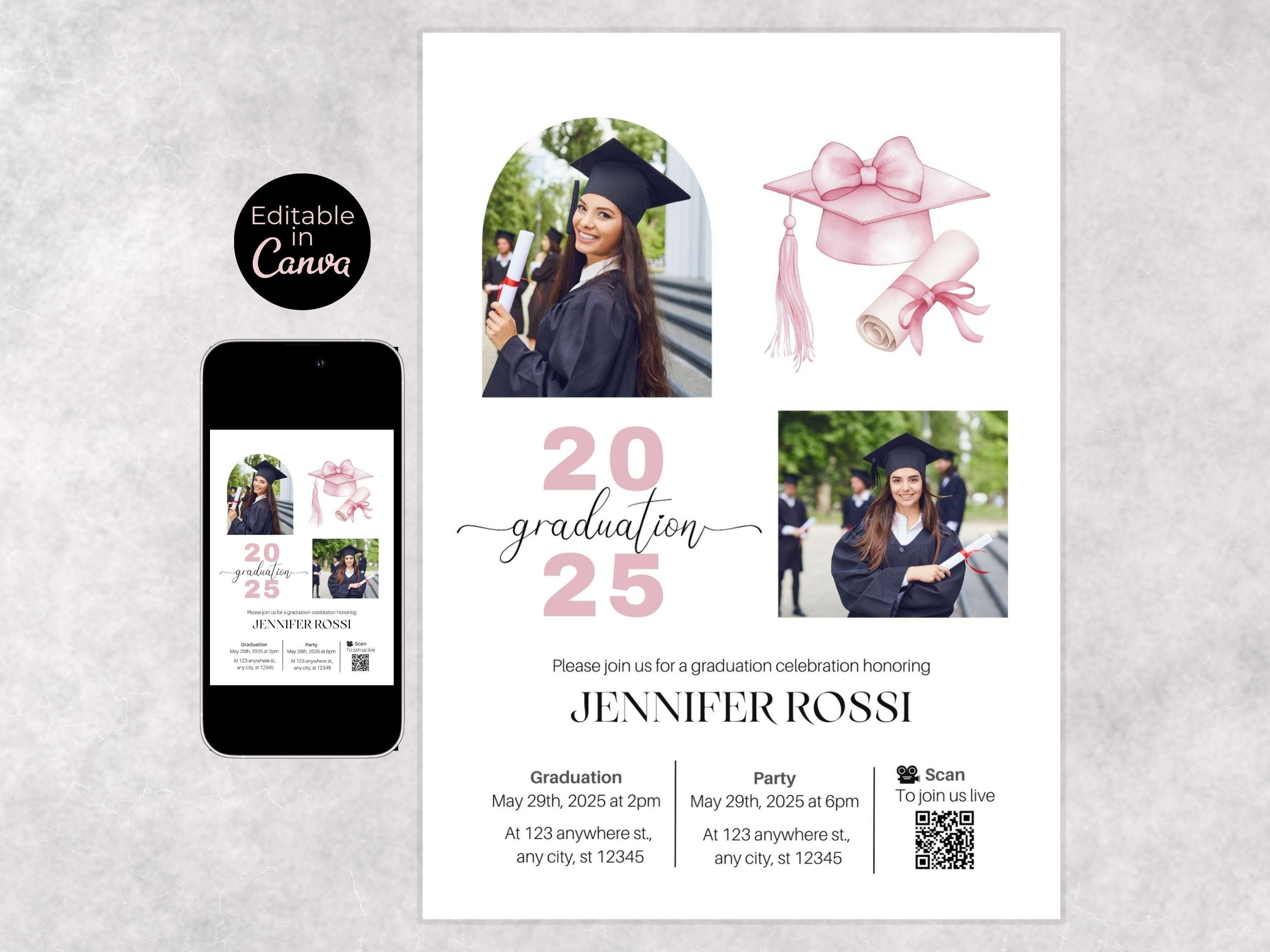Graduation Editable Invitation, 3 Photo Minimalist Design, Self-edit ...