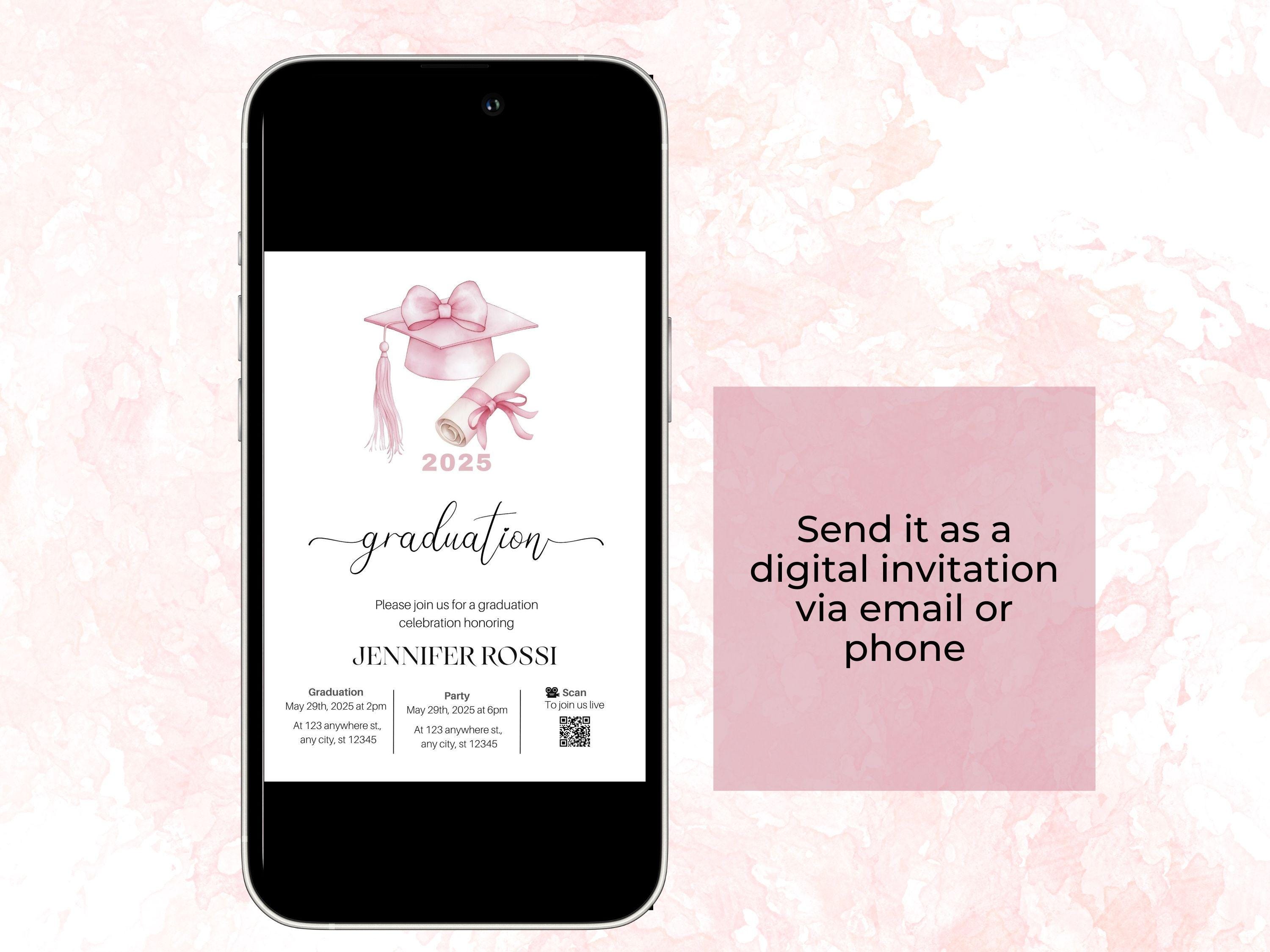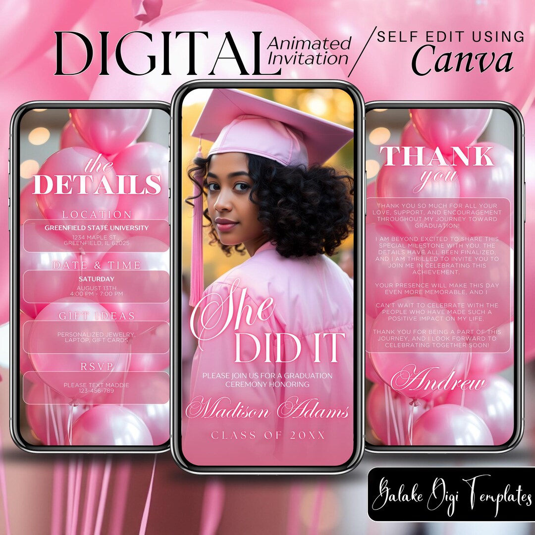 Pink Graduation Invites College Digital Download, Video Evite, Congrats ...
