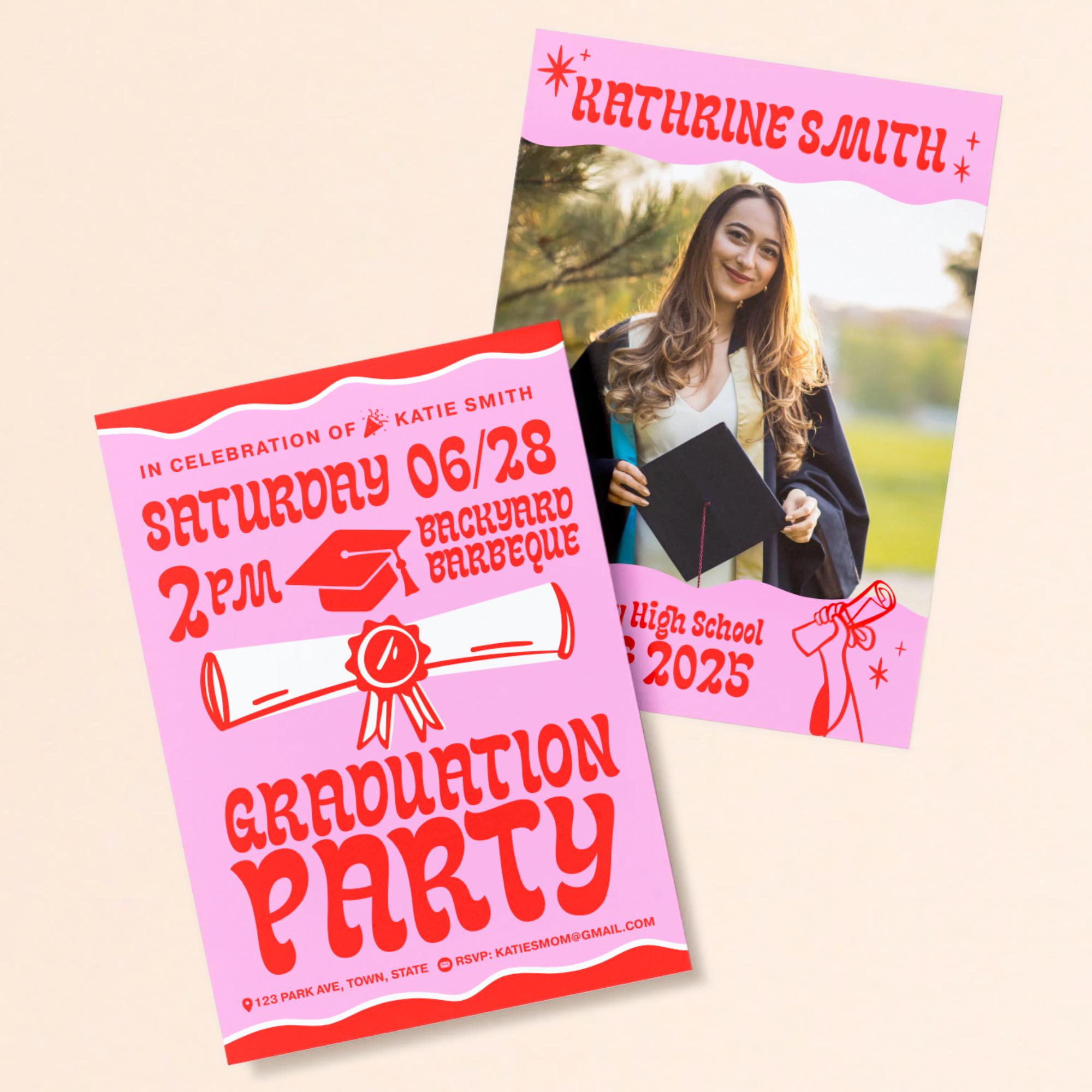 Editable Graduation Party Invitation Canva Template | Retro Pink Red ...
