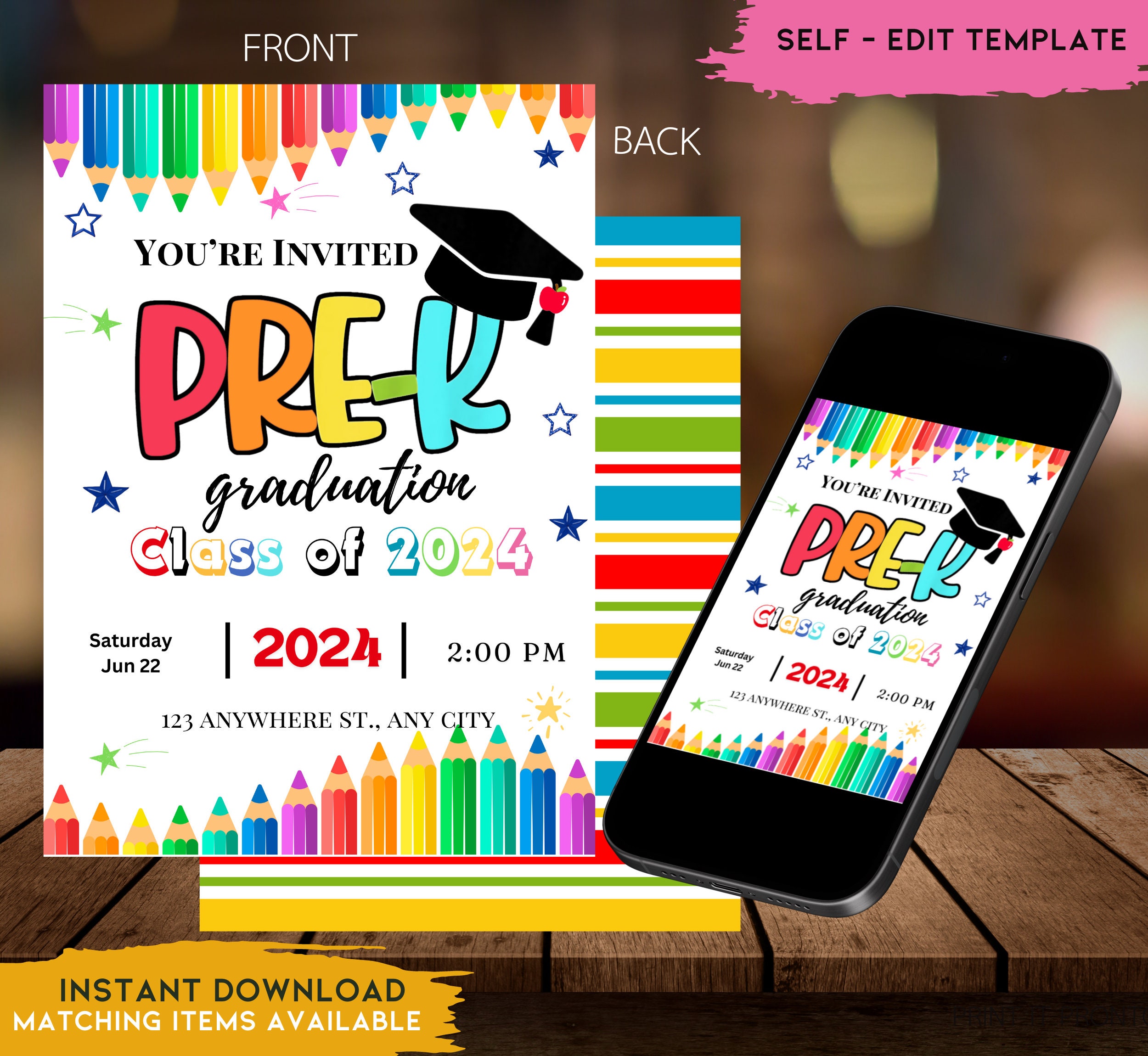 Pre K Graduation, Editable Pre K Graduation Invitation, Prek Graduation ...