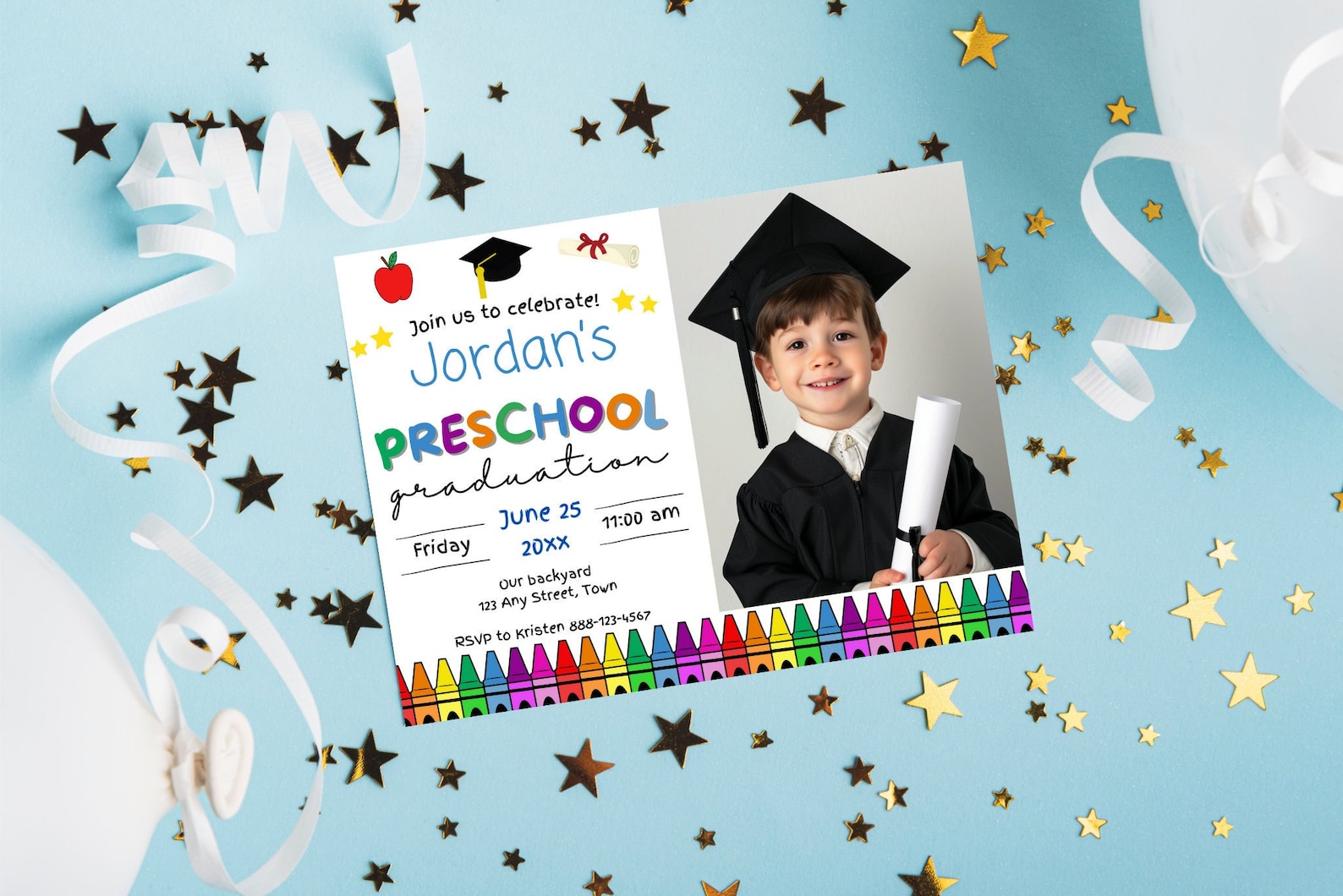 Editable Pre-k Graduation Invitation: Colorful Crayon Design (digital ...