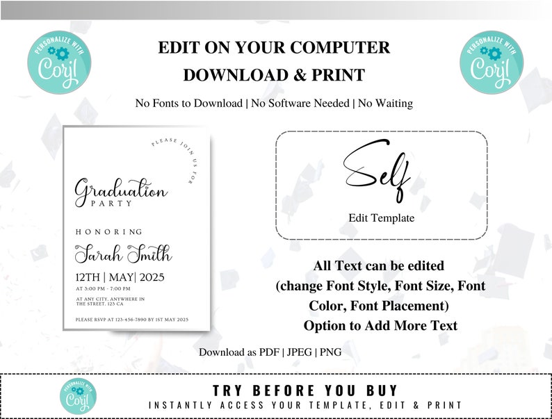 Graduation Party Invitation Template: Editable Electronic Invite - Etsy