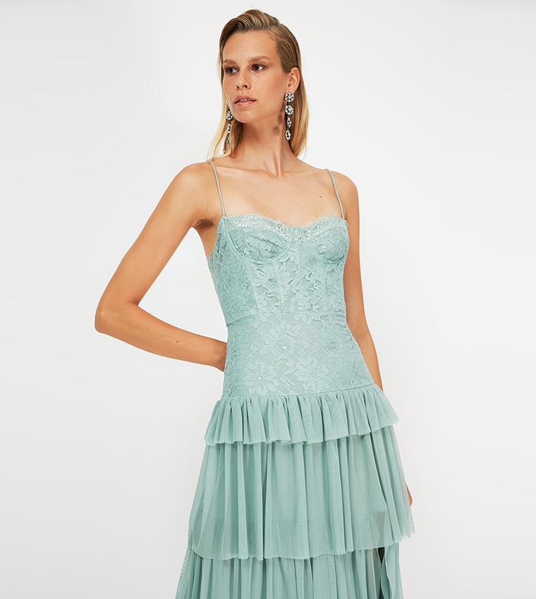 Buy Trendyol Lace Detailed Evening Dress & Graduation Dress In Mint ...
