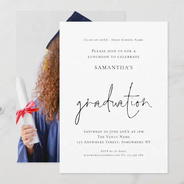 Simple Black White Grad Luncheon Photo Graduation Invitation | Zazzle