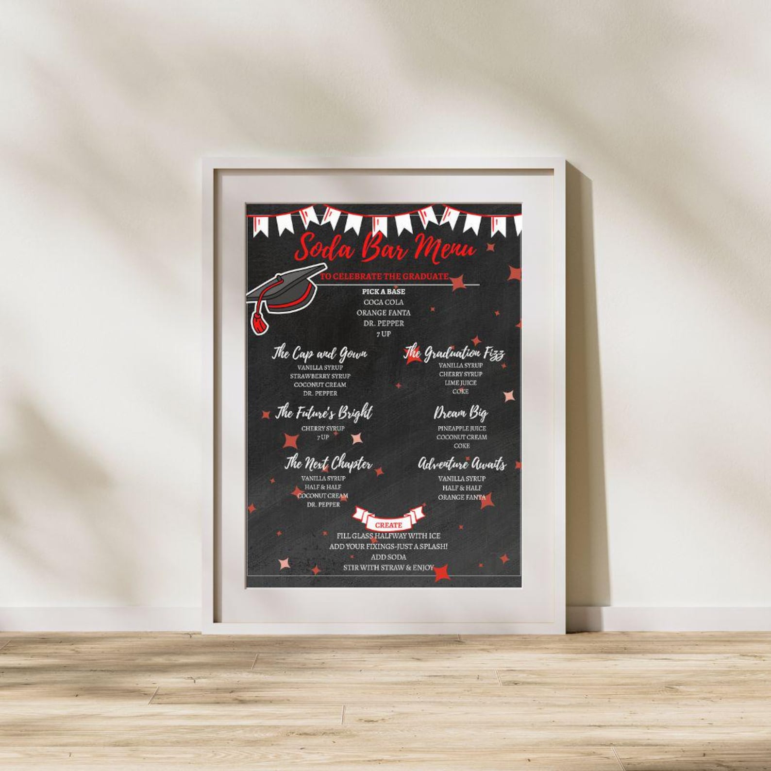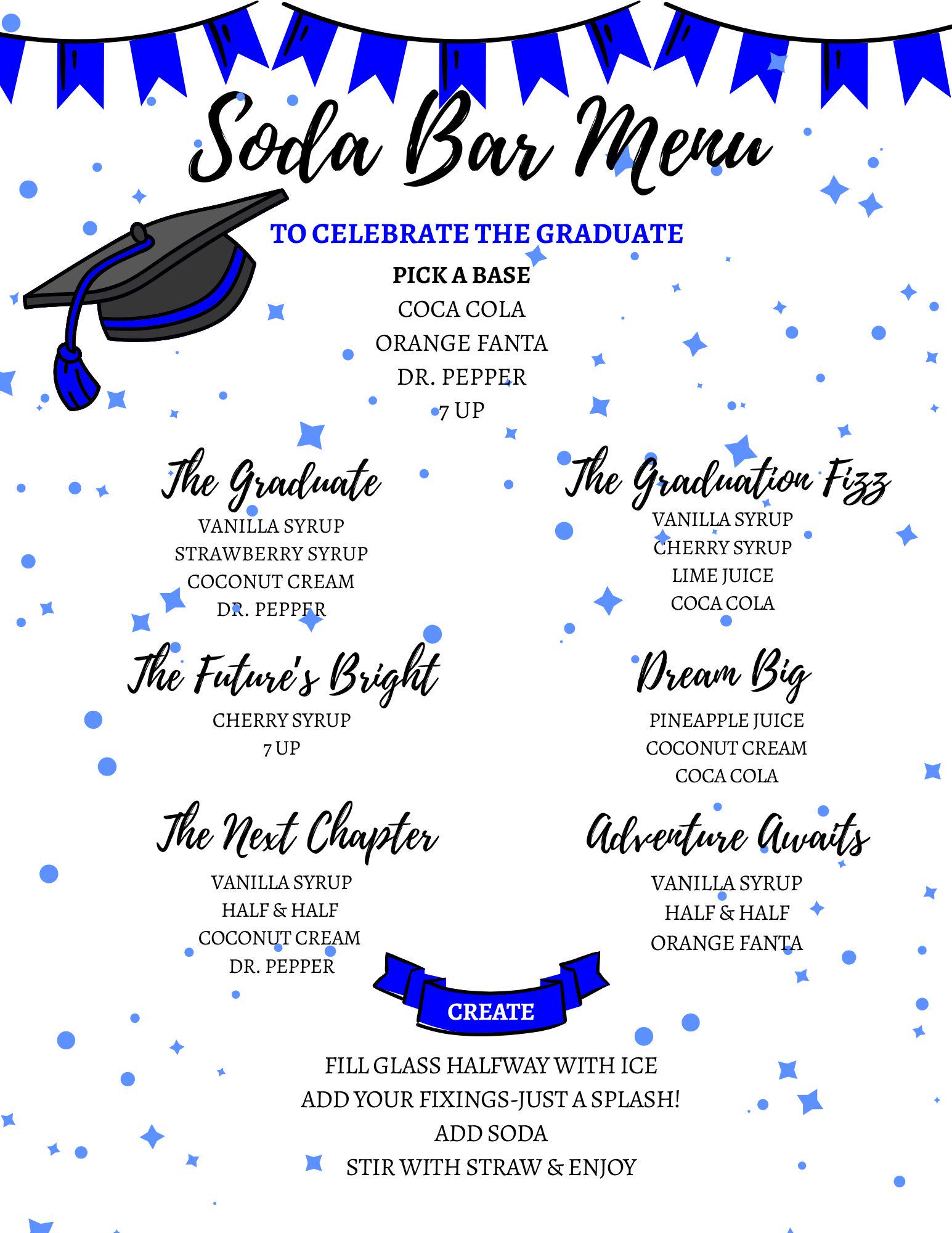 Graduation Soda Bar Menu | White Background | 5 Bright Color Options ...