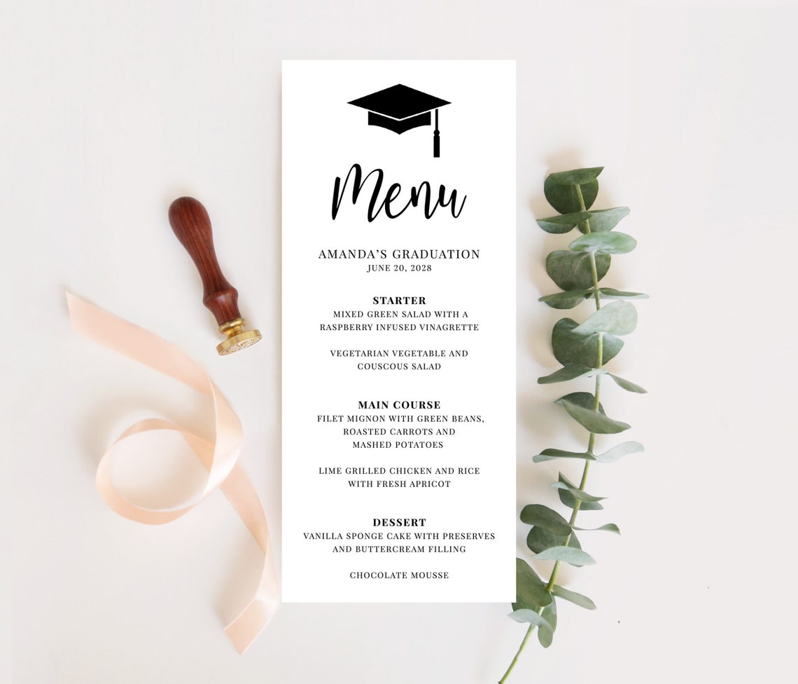 Graduation Menu, Graduation Menu Cards, Graduation Menu Template, Grad ...