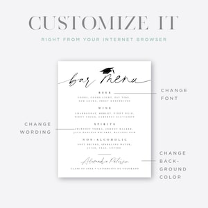 Graduation Bar Menu Sign: Editable Cocktail & Drink Sign (digital ...