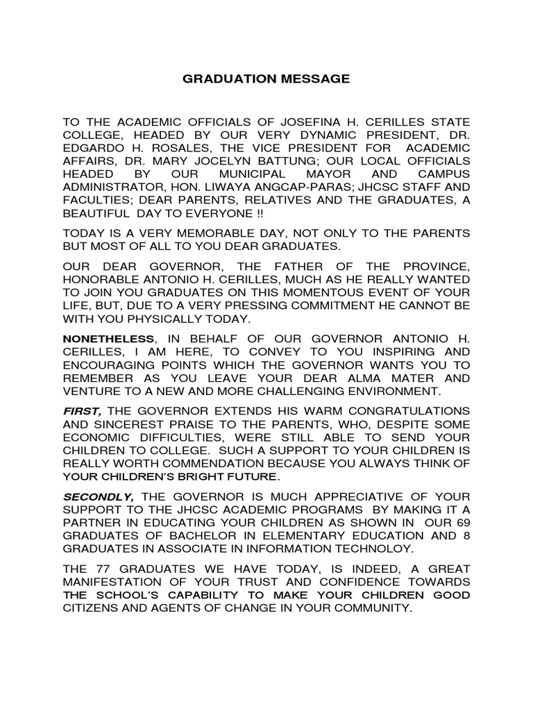 Graduation Message - GRADUATION MESSAGE My sincerest congratulations to ...