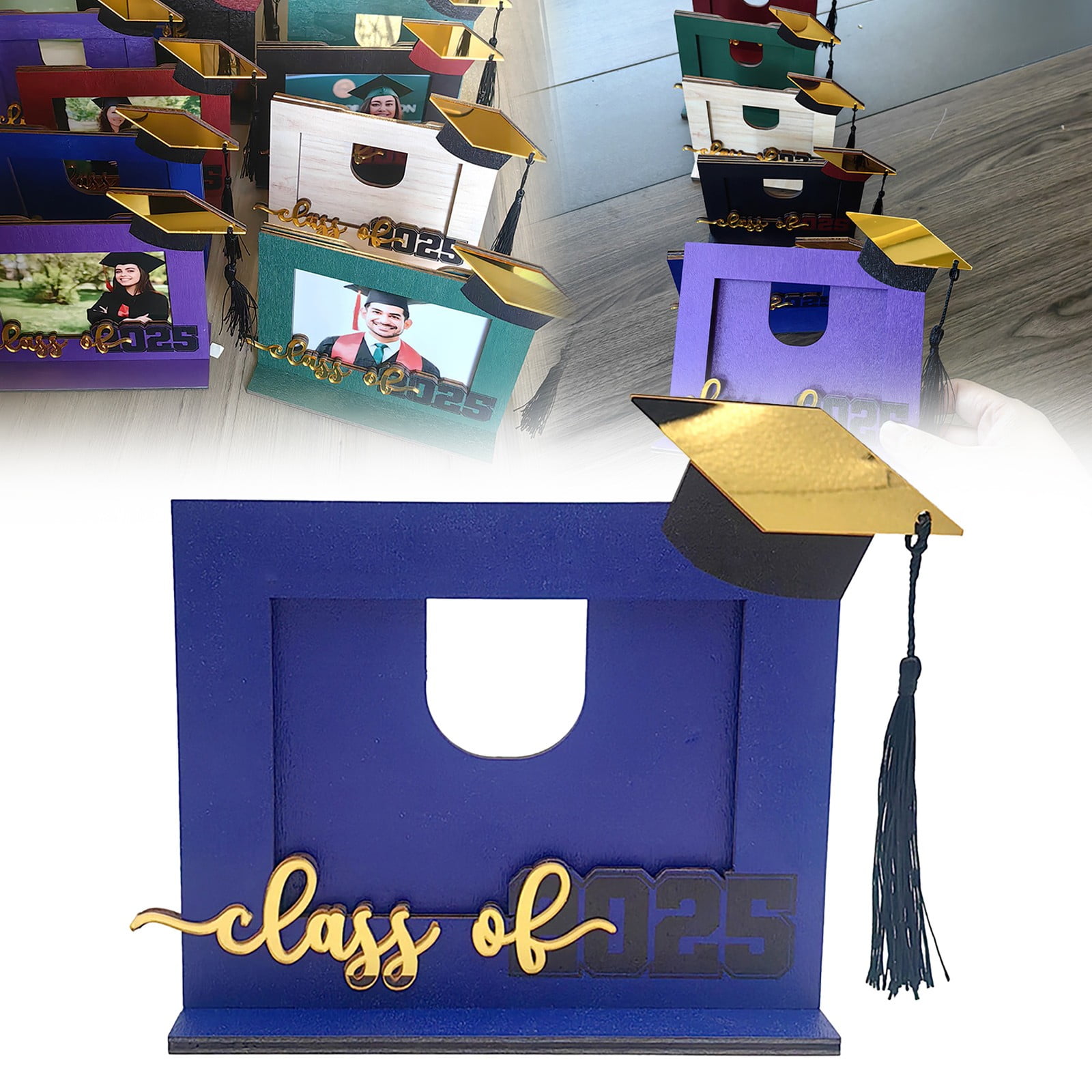 Wooden Graduation Photo Frame Grad Hat Diploma 3D Desktop Graduation ...