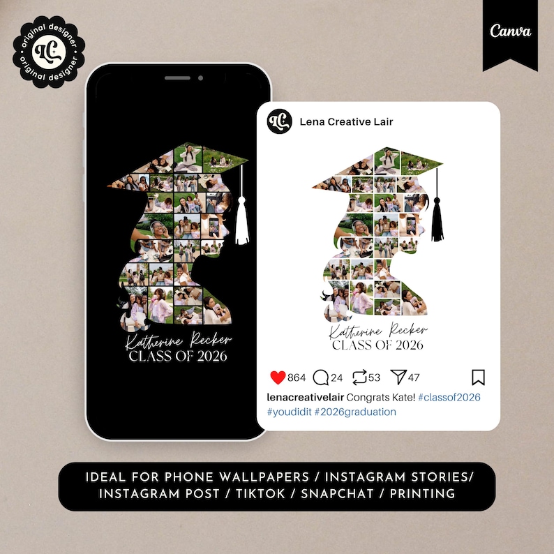 Graduation Photo Collage for Girl or Boy, Editable Canva Welcome Sign ...