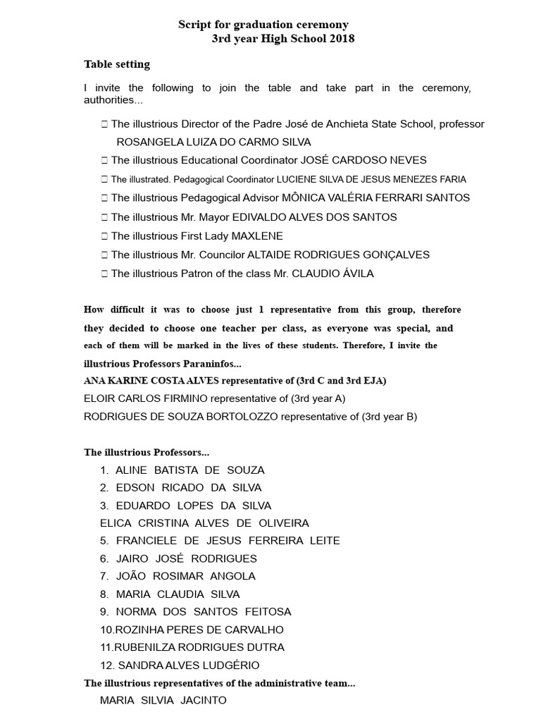 Graduation Ceremony Script 2018 | PDF | Brazil