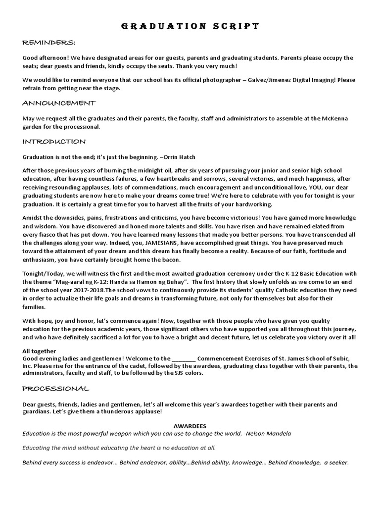 Graduation script - Graduation Script (Announcement that the ceremony ...