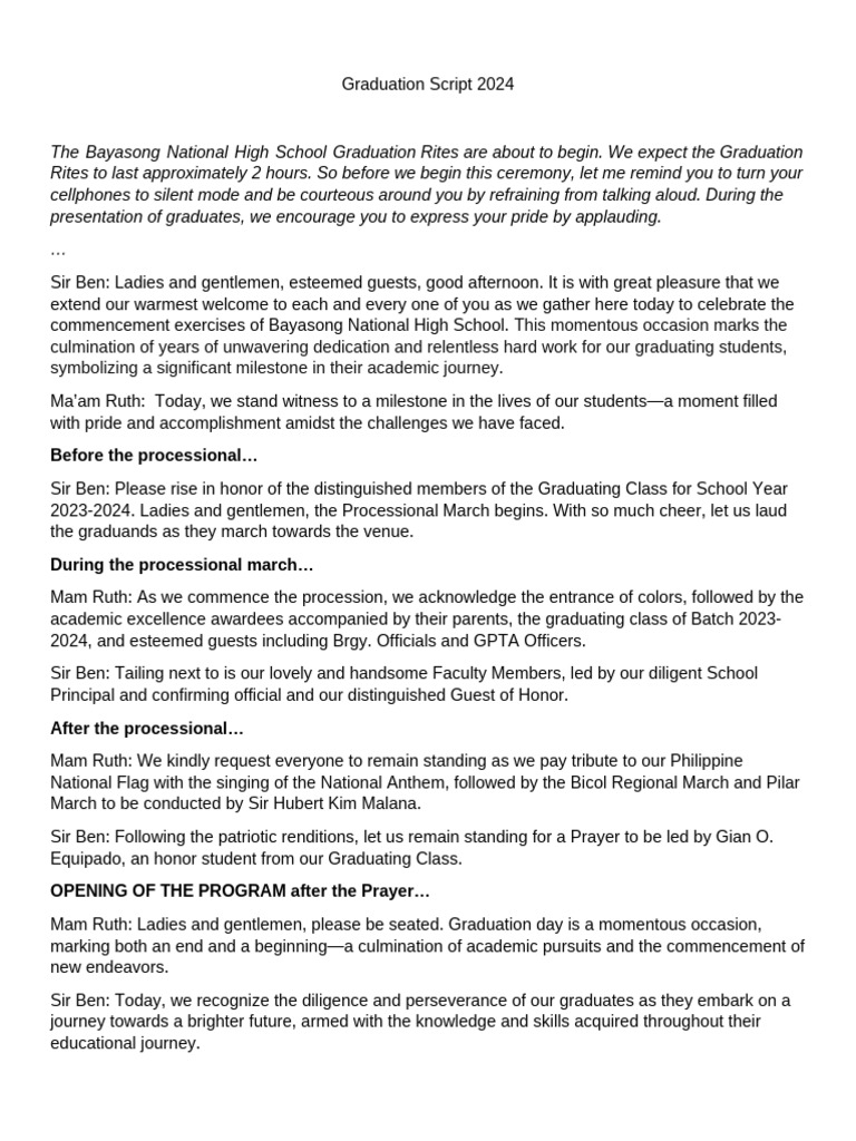 2024 Graduation Master of Ceremony Script | PDF | Social Science