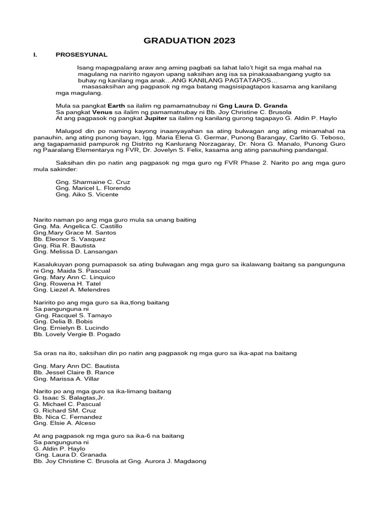 Emcee Script for Elementary Graduation 2023-2024 Ceremony - Studocu